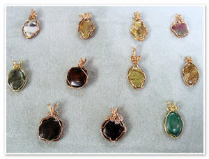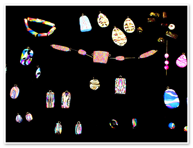 Diane Angus taught us how to create a pendent using the Natasha technique. This is a fun way to make polymer clay jewelry. By pressing pieces of clay together, and with a few twists and turns, you can create intricate designs.